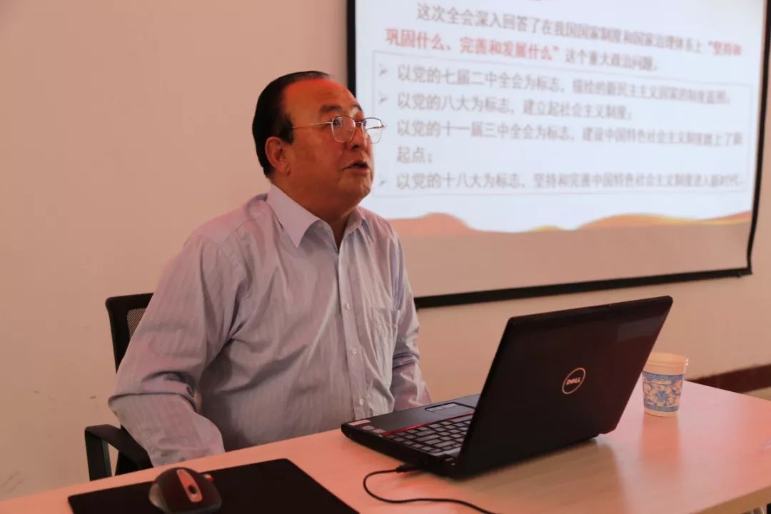 宣讲会伊始,李福明紧扣习近平总书记在十九届四中全会上的重要讲话和全会《决定》,结合平时学习思考的切身体会,从充分认识、坚持和完善中国特色社会主义制度、推进国家治理体系和治理能力现代化的重大意义开始阐述,尤其对深刻领会中国特色社会主义制度和国家治理体系的显著优势,坚定中国特色社会主义制度自信;准确把握、坚持和完善中国特色社会主义制度,推进国家治理体系和治理能力现代化的总体要求、总体目标和重点任务等几方面进行重点阐释和解读。