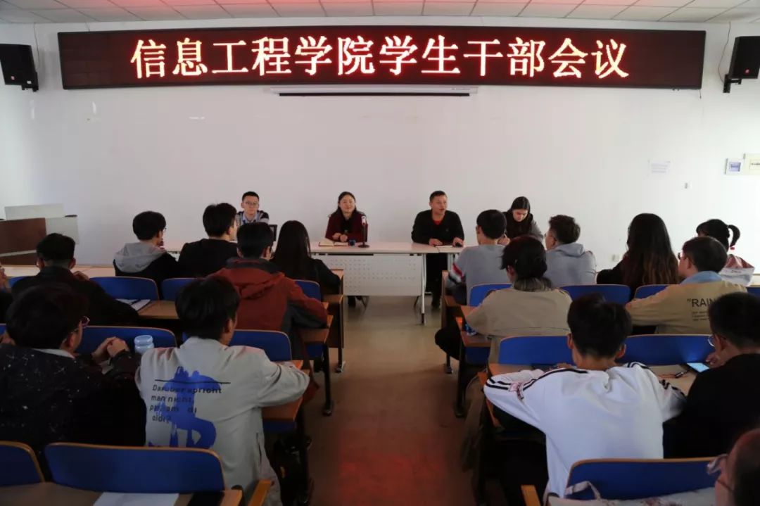 10月30日下午,我院在金波楼321室召开信息工程学院学生干部会议。我院党委副书记张振霞,辅导员李密、李雪洁、玛伊拜尔出席。我院全体学生干部参加。