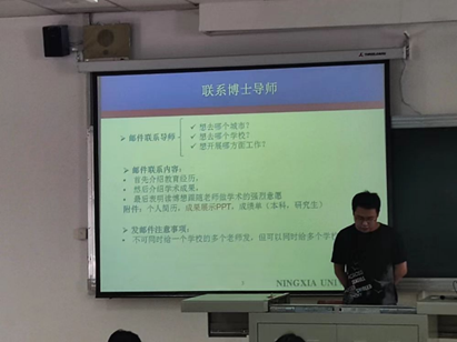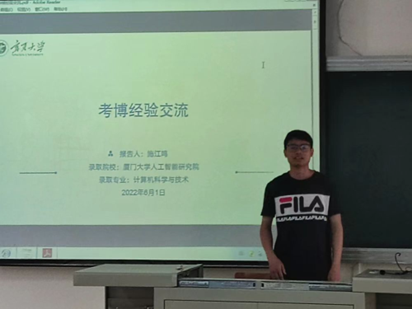 杨晓晓、施江鸣主要分享了考博的流程,详细介绍了申请考核制如何选择报考学校及导师、如何准备个人简历、联系报考导师、撰写科研计划书、初试资格要求和复试流程等申博经验。闫龙泉分享了个人科研经验,同时他还从自己申博的失败经历,鼓励大家只要不放弃读博的决心,就一定会取得最终的胜利。吴文俊分享了他的学术科研经验,介绍了研究生期间参与的科研项目和论文发表的一些方法和技巧。